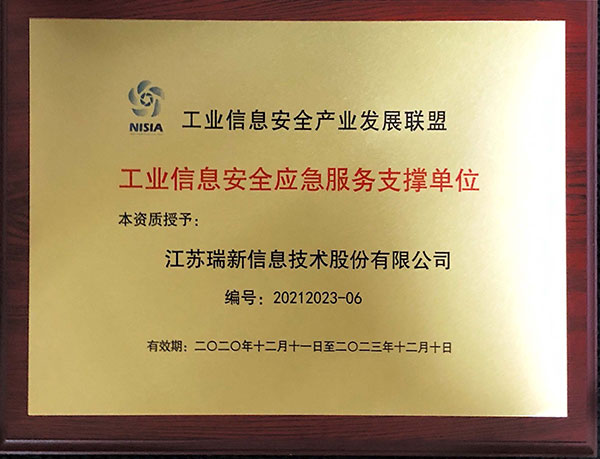 本次研討會精彩紛呈,亮點多多,成果豐碩。在這次會議上,江蘇瑞新作為第三批工業信息安全應急服務支撐單位被授牌。未來我司將繼續在工業互聯網安全領域繼續發揮自身的技術專長,為用戶提供優質的產品及服務。