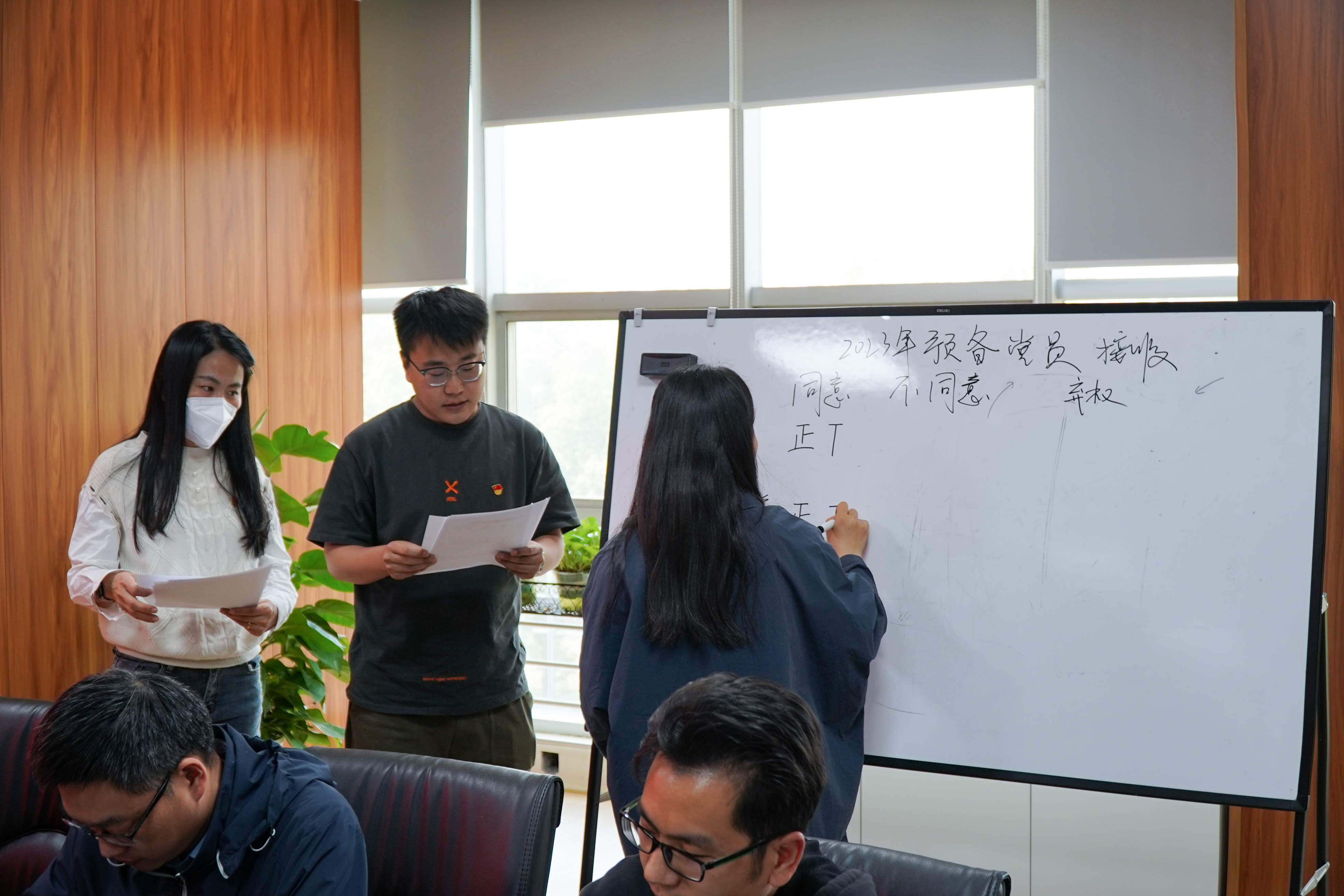 ? 5月12日下午,江蘇瑞新信息技術股份有限公司黨支部召開支部會議,此次會議研究討論支部黨員轉正事宜和總結階段性工作,并部署下步工作。會議由黨支部書記路世強主持,支部全體黨員參加會議。